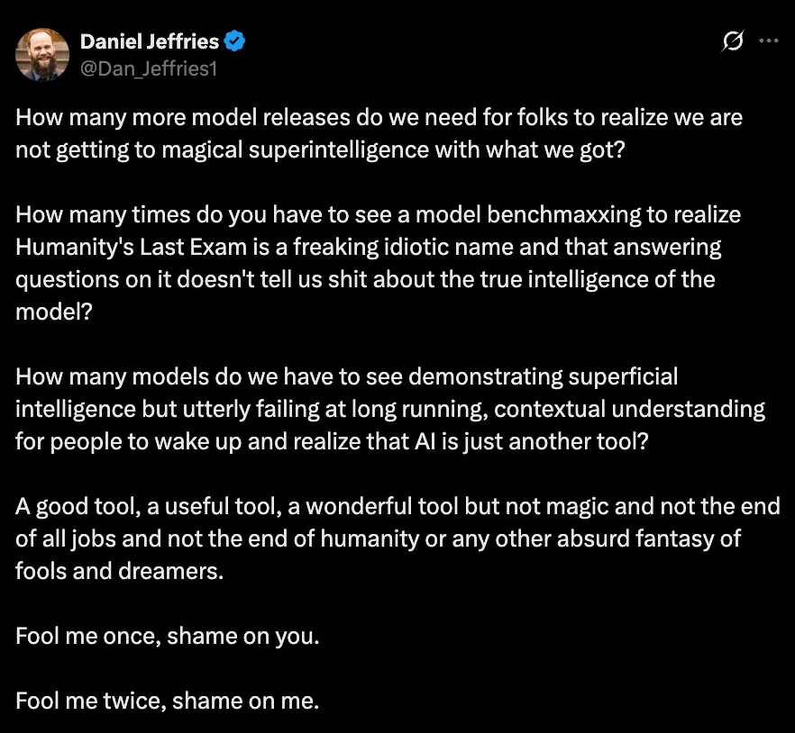 Ultimately, “superintelligence” is not singular. It won’t be created by a sole winner in a vacuum. It will be a domino effect.